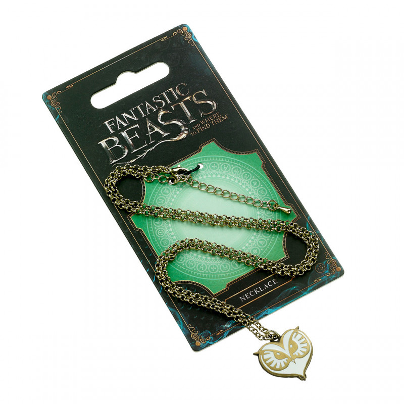 El colgante en metal latoneado (20 mm) con una cadena en metal latoneado (46 cm de largo) de Animales fantásticos. Vienen en un Blíster.