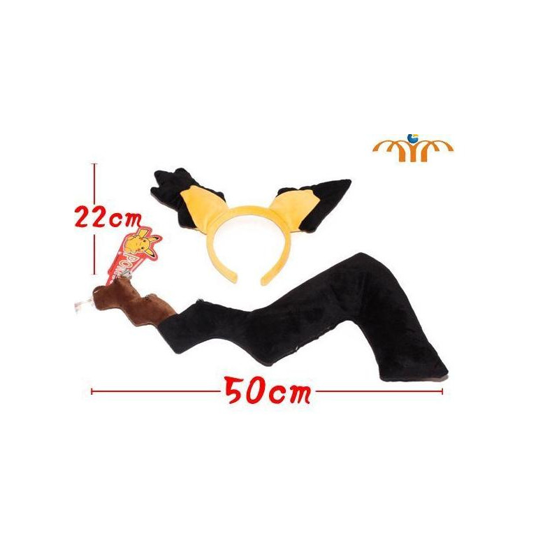 Diadema con orejas y cola con imperdibles ideal para disfraz del pokémon Pichu.