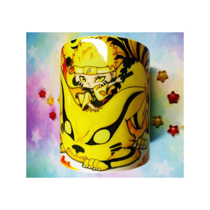 Cute Naruto and Kurama Six path mug taza