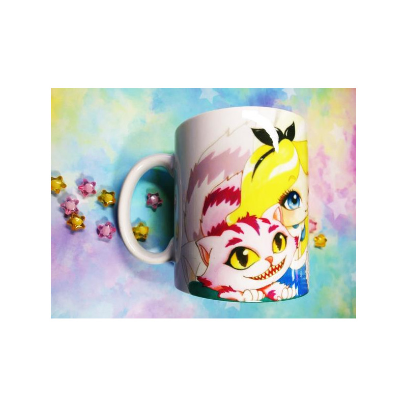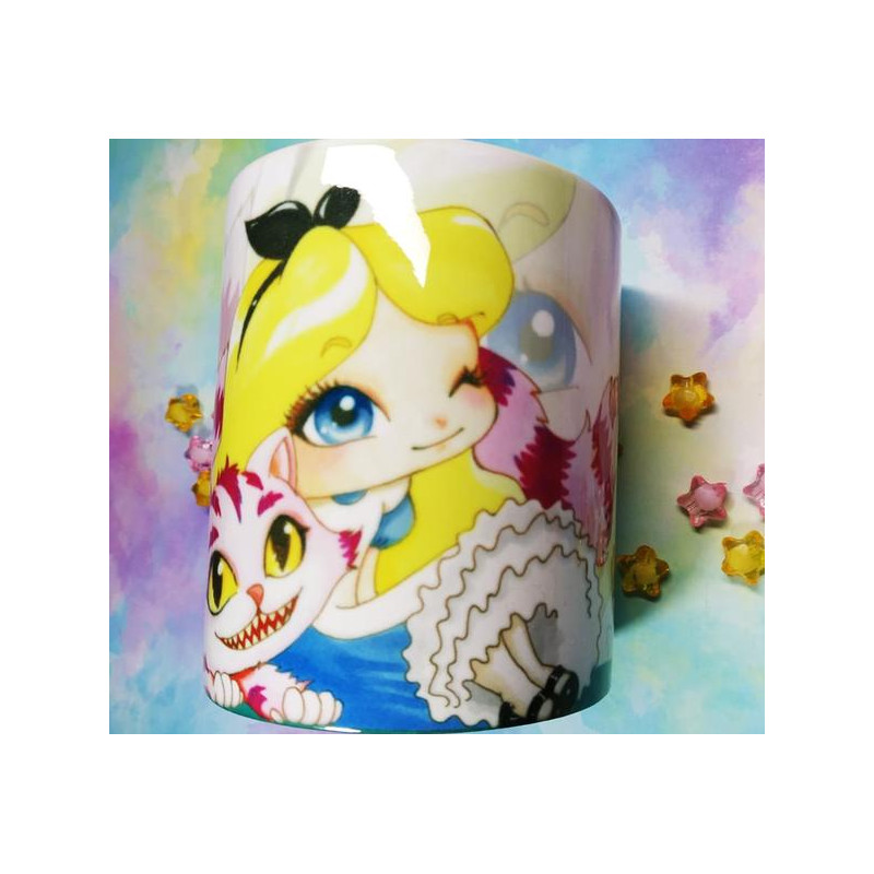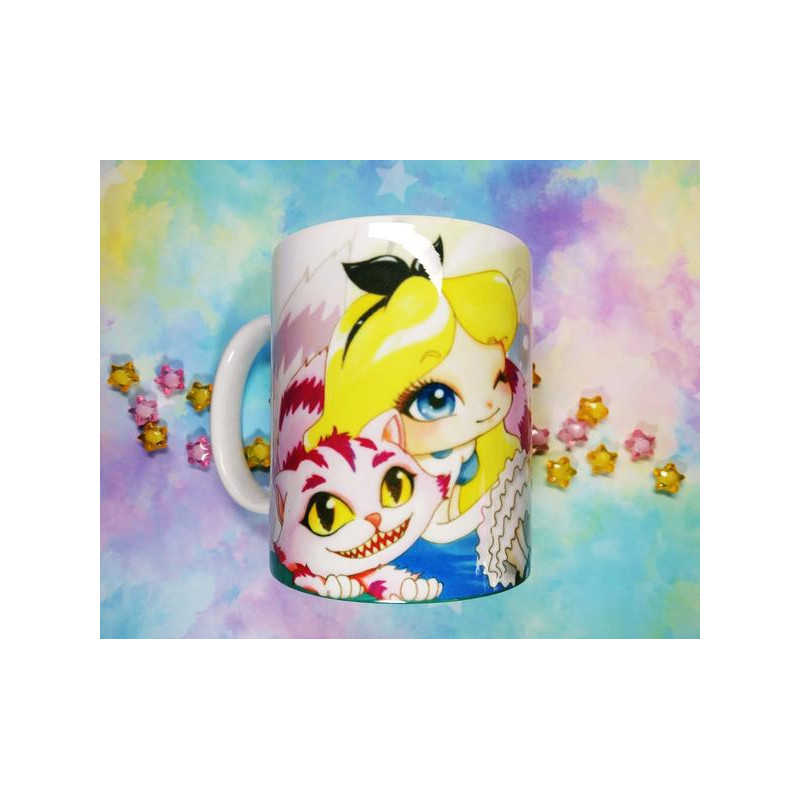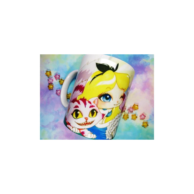 Cute Alice and Cheshire mug taza